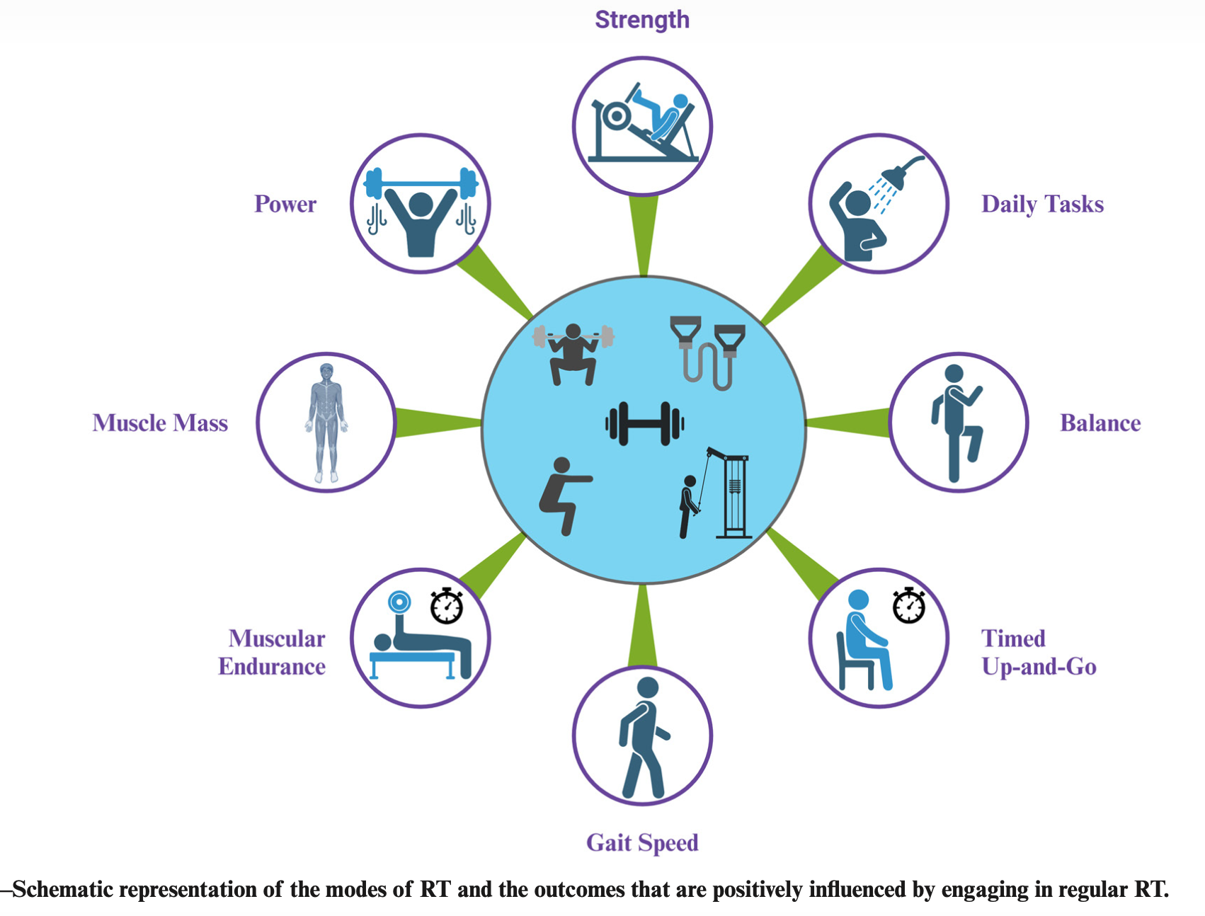 Outro aspecto muito abordado nesse documento é o efeito do treinamento de força em testes funcionais que usamos muito no nosso dia a dia, como TUG, testes de cadeira, caminhada, entre outros. Eles resumiram bem esse resultado na figura abaixo. No próximo mês, vamos fazer uma sessão especial na CentralFlix para discutir esse documento com mais profundidade.
